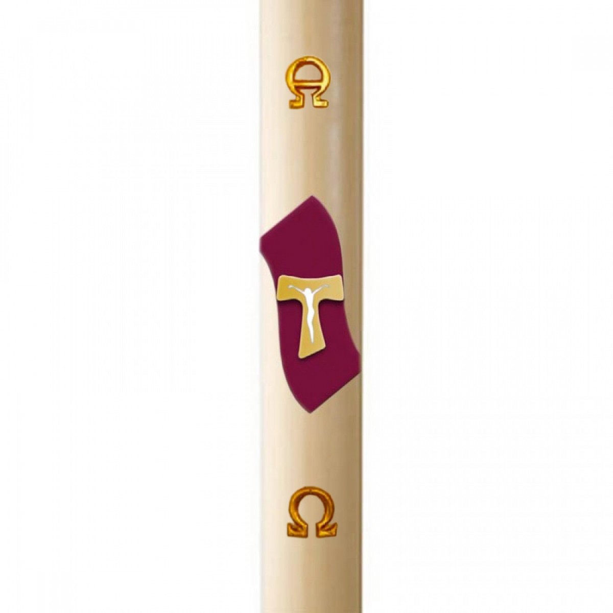 Cero Pasquale in cera con Croce tau in rilievo 8×120 cm