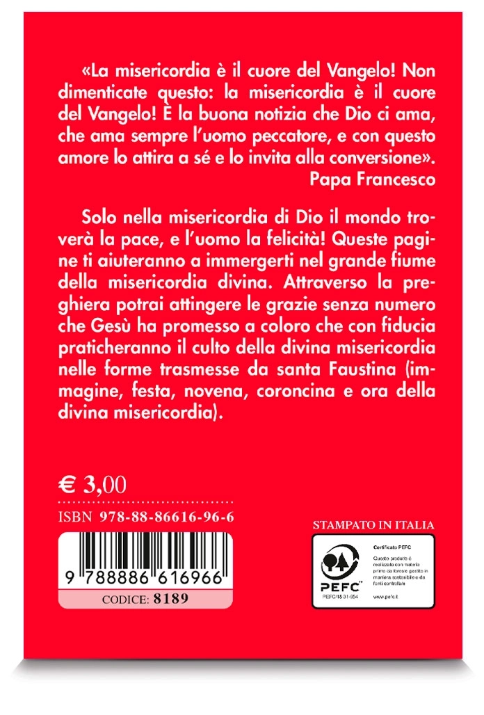 Il libro “Coroncina e Novena alla divina misericordia” intende riportare al centro il tema della divina misericordia: «Solo nella misericordia di Dio il mondo troverà la pace e l’uomo la felicità!» (Giovanni Paolo II).